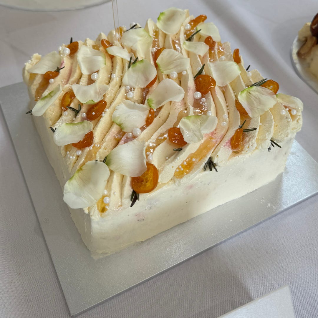 And the winner? The cake that stole Darren and Rachel’s hearts was this glorious Orange and Rosemary Cake (pictured above) - orange and rosemary sponge lightly soaked in a rosemary infused simple syrup, and filled with a layer of tangy but sweet orange preserve. This icing was a fluffy, pearlescent buttercream, topped with candied kumquats, rosemary leaves, drops of orange preserve, white rose petals and pearl dragées varying sizes. Made by talented baker Rochelle, pictured below middle. If you’d like to try this or one of her other sensational creations pop over to her insta page @Ro.nd.Ra where she collaborates with her friend Rachelle, and DM her, she might just be willing to make you one.