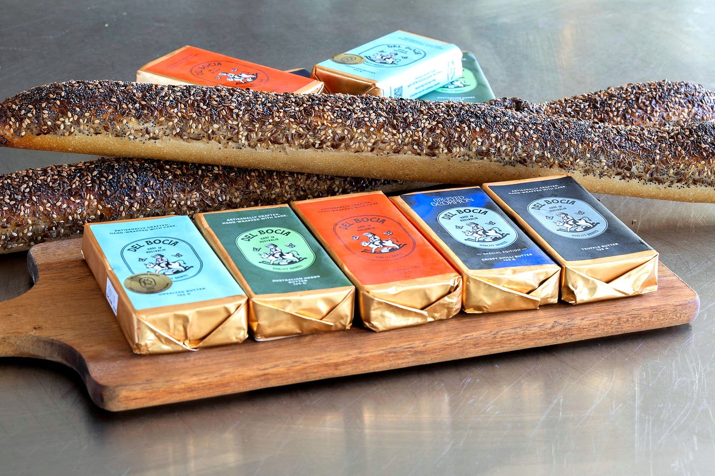 Last week, we were lucky to be gifted some wonderful butter from Del Bocia, a new boutique brand making waves. Handmade in Australia using an authentic Italian recipe, each block is hand-wrapped, elegantly packaged, and utterly delicious. Naturally, we did the only sensible thing: picked up some Baker Bleu bread, chilled a bottle of champagne, and set about tasting every flavour—salted, unsalted, herb, crispy chilli, and truffle.